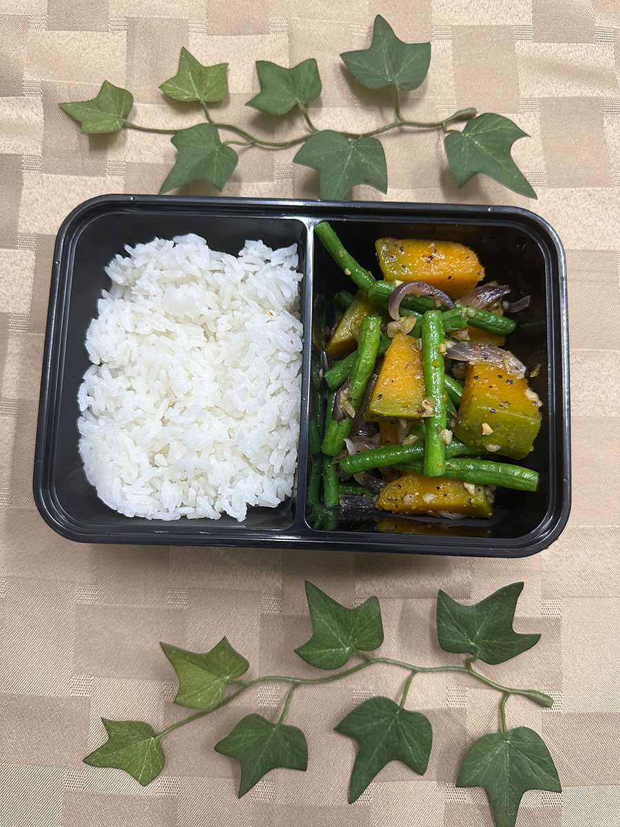 Squash, and long beans simmered lightly in coconut milk